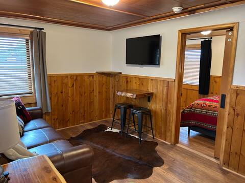 Rustic retreat in center of beautiful North Park. Perfect for long stays with a full kitchen. Whether you enjoy hiking, hunting, bird watching or just beautiful views, you will have quick, convenient access to all the area has to offer. This unit features one bedroom and a sleeper sofa to accommodate up to four guests. Kitchen is fully outfitted with basic pots & pans, dishes and cooking ware. Guests also have access to onsite laundry.